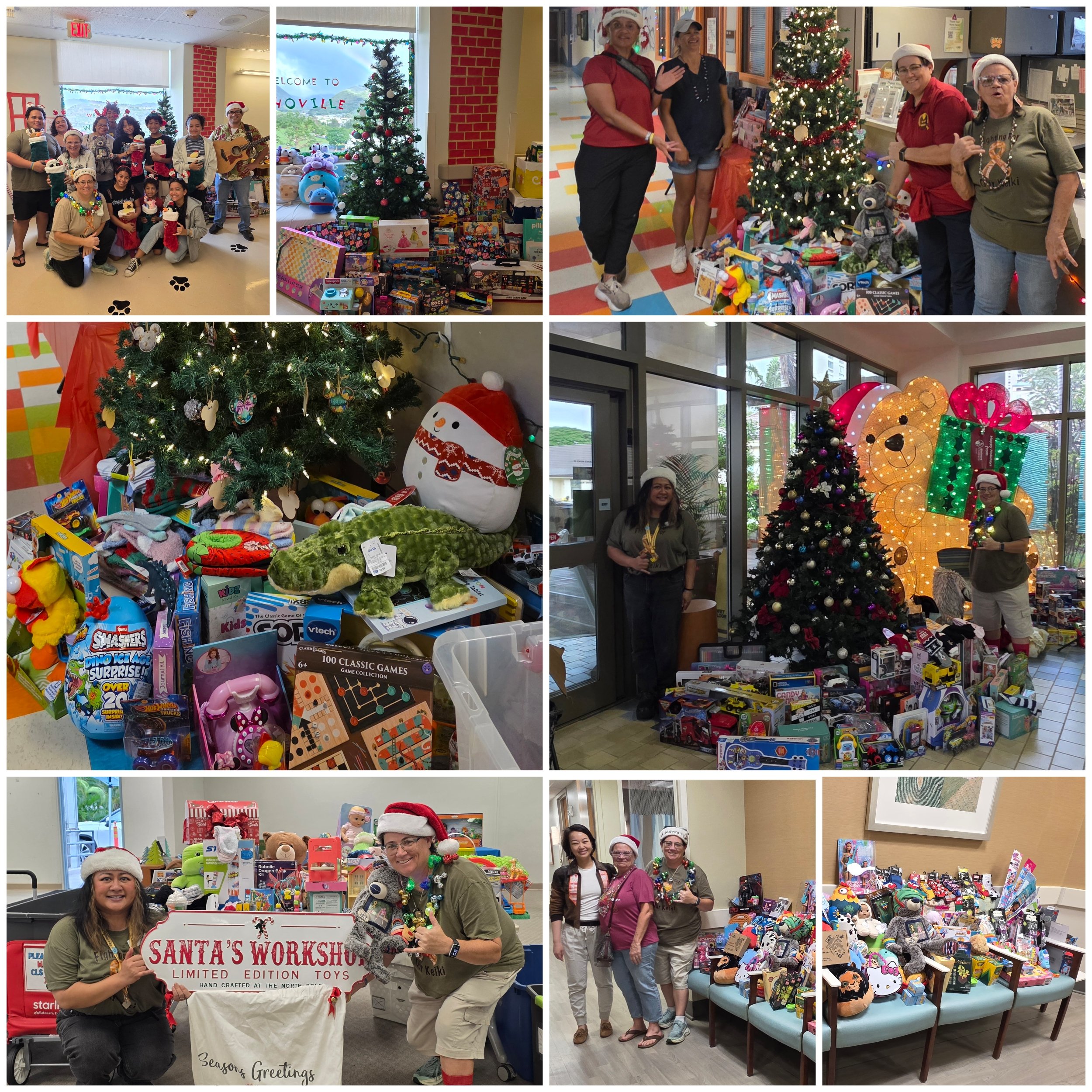 This year, your amazing generosity helped us deliver toys to 6 hospitals across Hawaiʻi, including our first-ever drop on the Big Island! We brightened days at Kapiʻolani, Shriners, Kaiser (pediatrics, NICU!), Hawaiʻi Cancer Center at Pali Momi, Waimea Hospital Peds Clinic, and Tripler.